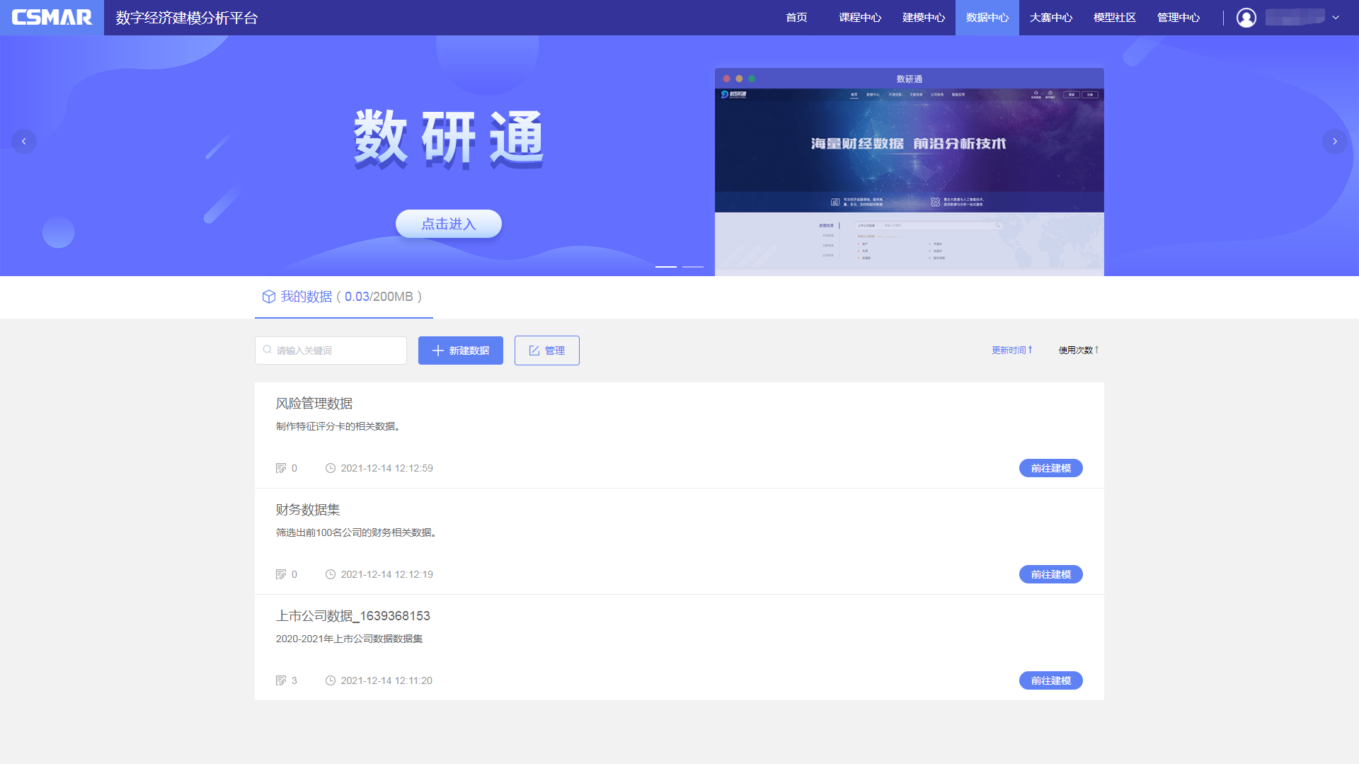 用户顺利获得DEMA数字经济建模分析平台,可以调用案例配套的来自CSMAR库的样本集数据,也支持上传文件在这个平台上面完成基本的数据分析工作,并且支持在线撰写实验报告,导出分析代码、下载分析结果。